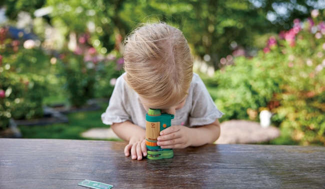 ¿Qué descubrirás hoy en el campo? ¿Un pájaro? ¿Un oso? ¿Un duende? Observa de cerca los animales y plantas que estén lejos con este telescopio de juguete de 8 aumentos. Perfecto para que los niños y niñas puedan observar e identificar aves y animales en la naturaleza al mismo tiempo que se divierten, hacen ejercicio y disfrutan del aire fresco.