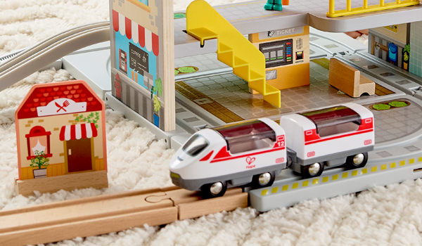 ¡Da vida al tren de madera de tu hijo con la estación de tren Record & Play! Los niños pueden grabar sus propios anuncios de estación y escucharlos mientras pasan los trenes, mientras que las luces y los sonidos de las señales añaden detalles realistas. Esta estación interactiva fomenta la creatividad, el aprendizaje auditivo y los juegos de rol imaginativos.