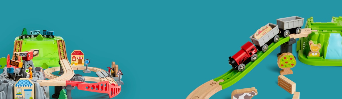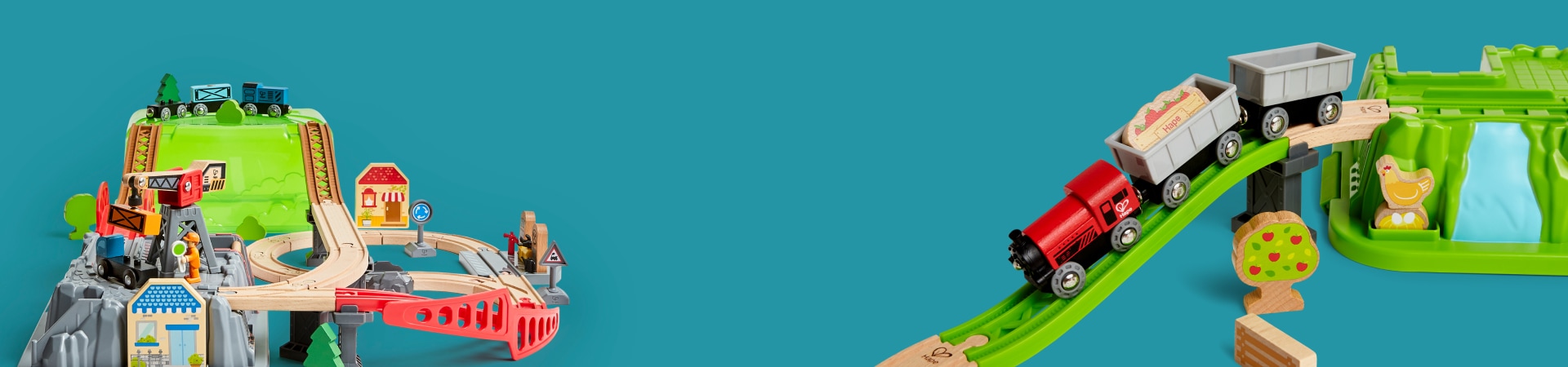 ¡Extiende su línea de tren Hape hasta el siguiente pueblo! Esta variedad de vías rectas y curvas. Esta variedad de vías rectas y curvas te propocionará el material de construcción necesario para que construyas la compañía de tren de tus sueños.