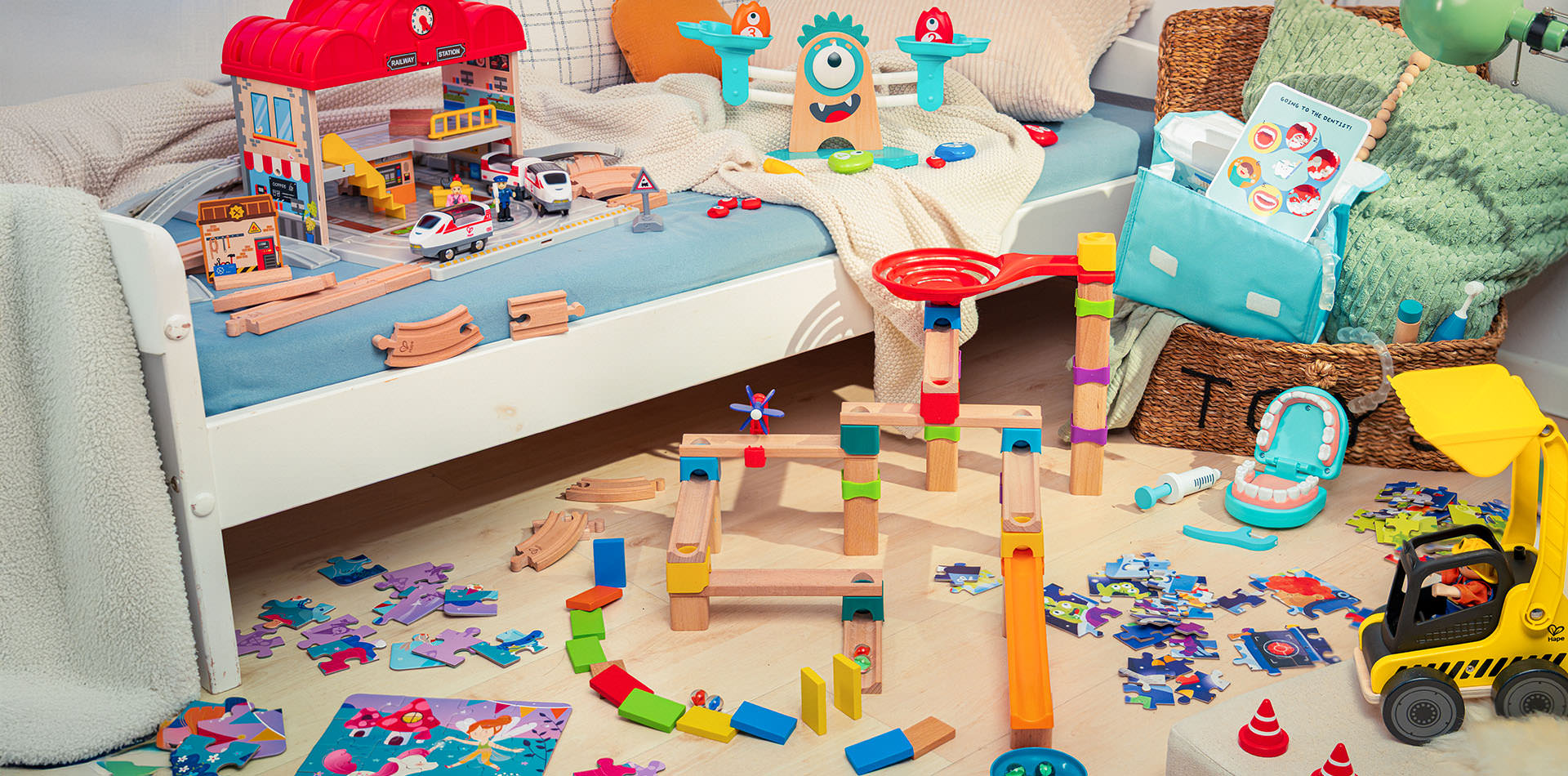 Las grandes ideas no necesitan grandes espacios. Los juguetes Hape convierten cualquier rincón en un taller de diversión, despertando la creatividad y nuevas habilidades.